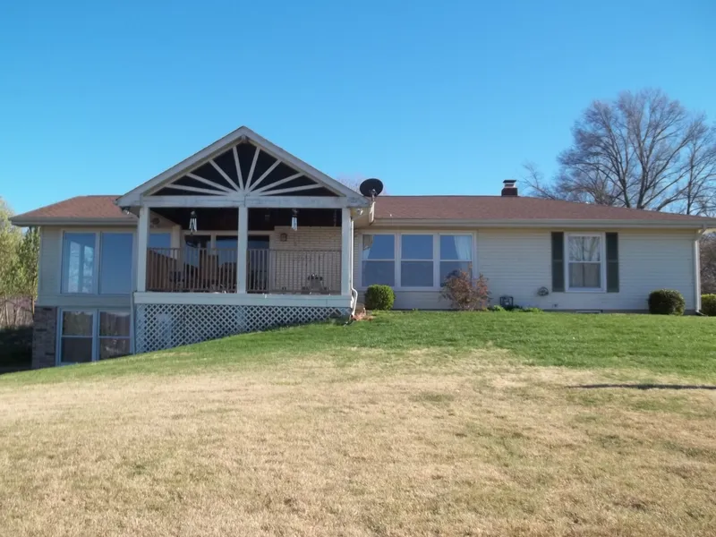Beautiful home located upon a hill overlooking old golf course. Two story home with two car attached and two car detached garage. First floor kitchen looks over faulted ceiling to large family room below. New large windows give view of the rolling hills. Home has gas stove, refrigerator, microwave/hood.