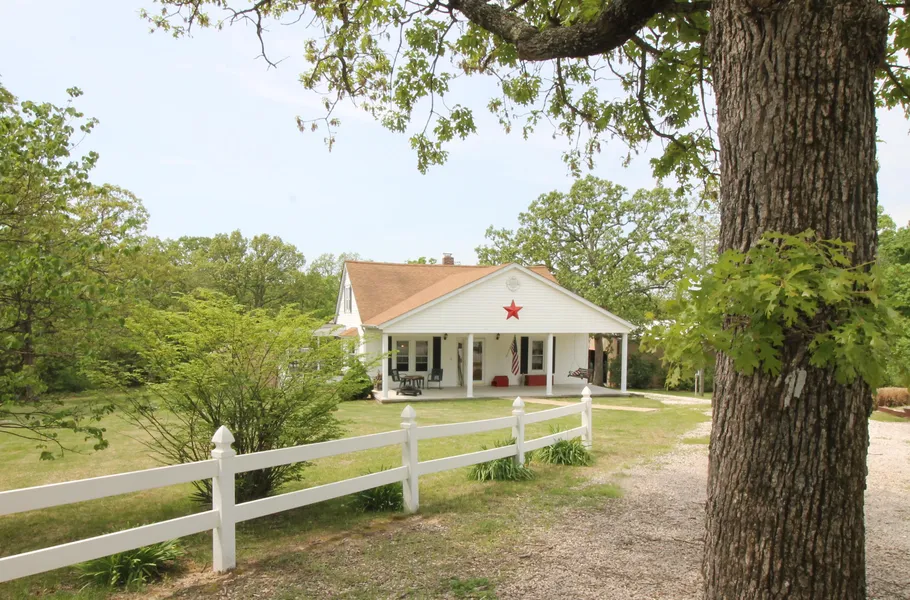 Country Home or Week-end-Getaway on pristine 30 acres MUST SEE. Set back off blacktop road nestled in the perfect mix of trees and open area overlooking an awesome stocked lake. MUST SEE, charming story and a half with restored wood floors and tasteful "Country" throughout. Whitetail Deer, Turkey and Wildlife with several food plot locations. Entertaining at its best with park like setting, swimming and fishing. Good fishing in the property or just ten minutes to the Meramec River for Kayaks, Canoeing and Smallmouth Bass. The house is updated nicely and suitable for a horse property or mini-farm. Approximately 10 acres in good grass and balance mostly mature white oak and mix timber. With nearby trout fishing, state parks, wineries, river floating, Meramec Caverns and Onondaga Cave this property is in the heart of the finest of Missouri Recreational area. Watch fish working the lake, wildlife and sunsets from the oversized deck. Wake up in the morning with your coffee, song birds and spring flowers from the screened in porch. Bonfires, roasted marshmallows, fall colors and hayrides on perimeter trail around the property. 30 x 40 RV/car garage. Available turnkey.