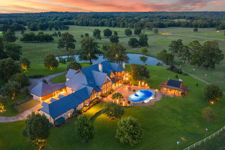 The area around the house is attractively landscaped and irrigated. Outside living is encouraged while enjoying the magnificent views of the lake, pool, and pastures while sitting on the covered porches, balconies, and screened in porch on the back of the house. The negative edge swimming pool is salt water and the gazebo has an outdoor fireplace, with gas grill, refrigerator, and sink.