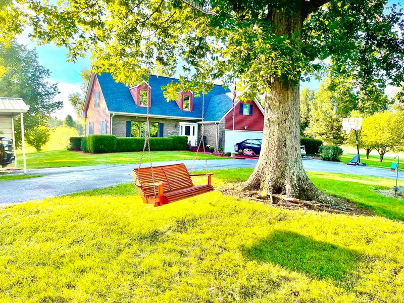 If you have been dreaming about a country home with a park-like setting yet close to town, you must check out this gorgeous Cape Cod on 2.4 acres just outside Corydon with easy access to I64 and Louisville! This stunning custom home has 3 bedrooms, 2-1/2 baths, and 2128 square feet on two levels. The main level has a large living room, sunny dining room, eat-in kitchen with beautiful cherry cabinets, half bath with stained glass window, laundry room, pantry, and a huge family room with intricate ceiling details and sliding glass doors which open to a back deck with gorgeous views of the countryside. The upper level boasts of a huge master suite with a balcony overlooking the back yard and an ensuite bath. The master bath is like a spa with its large walk-in glass door shower, skylight, soaking tub, and leaded glass window. Upstairs are also two additional nice sized bedrooms, another full bath, and dormer area. No details were spared in this home which has hardwood floors throughout, chair rails and wainscotting, and beautifully detailed ceilings in the master and the family room. Even the two car attached garage has heat and a/c. Not only is the house special, the grounds are absolutely park-like! A long paved driveway beckons you to enter the gorgeous grounds with 2.4 acres and outbuildings. The large detached garage has room for two cars, a workbench area, and an additional 3rd bay or large workshop area. Additionally, there is a large carport and a wood shed for storage. Hurry or you will miss out on this very special property!