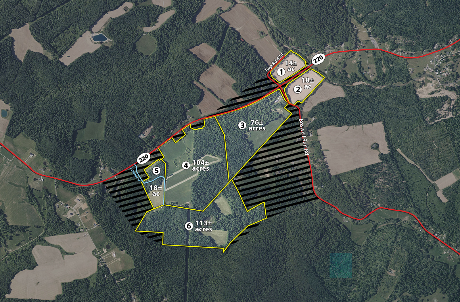 Tract 5: 18± ac that creates for a secluded setting & great potential build site. Consider combining with tract 4 for a large hay producing field or combining with tract 6 to create an incredible recreational property.
