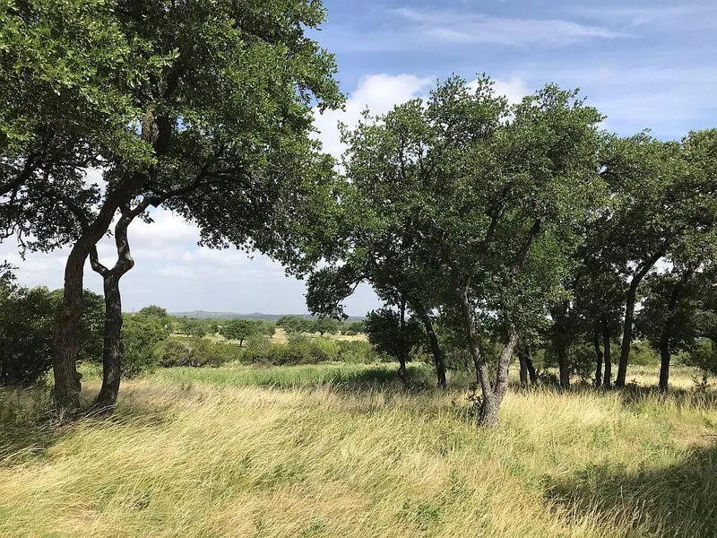 DESCRIPTION: Generally a gently rolling to rolling country with live oak and mesquite in the low country. Live oak and cedar in the hills give way to some very nice views. The entrance and headquarters area has been cleared of cedar and the oaks, persimmon and mesquites have been trimmed, giving the headquarters a well-manicured look. Conservation dams in draws and along Persimmon Creek have prevented erosion and kept what would be runoff on the property and back in the ground. Approximately 10 acres have been cultivated. This property is well watered by five wells. Wildlife include deer and turkey.