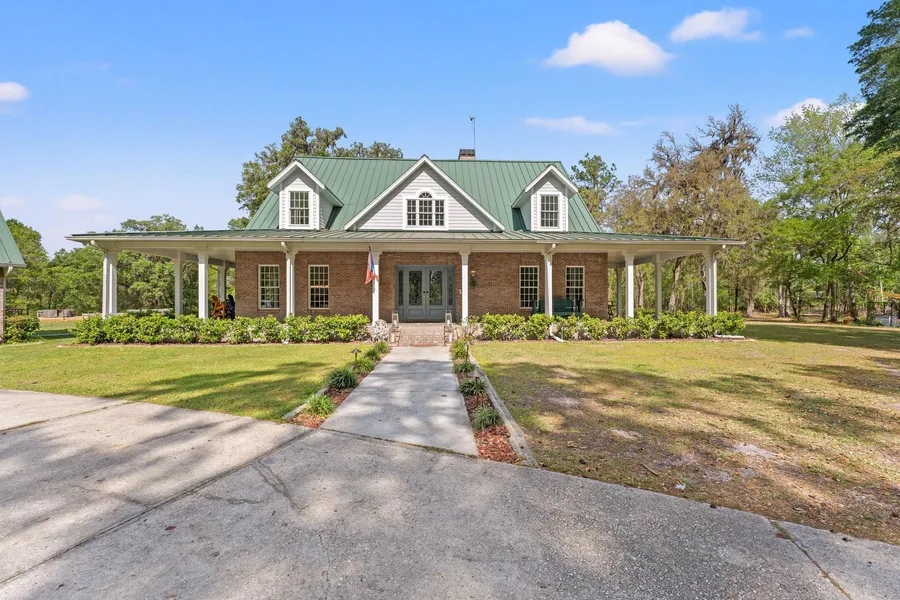 Welcome to 105 acres of pure Florida paradisewhere rolling hills, open pastures, flowering fields, and towering grandfather oaks create a breathtaking backdrop for a truly exceptional ranch lifestyle. This versatile property is a harmonious blend of beauty, function, and income potential, featuring a mix of planted pines for future return, miles of cut riding trails, and stunning views at every turn. At the heart of the property sits a beautifully remodeled 4-bedroom, 4-bathroom brick home offering over 4,600 sq ft of refined living space. With a wraparound porch that welcomes you with classic country charm, the interior is a seamless mix of modern luxury and cozy warmth. The bright, open floor plan flows effortlessly through expansive common areasideal for large families, entertaining, or holiday gatherings. Three of the four bedrooms are private en-suites, providing space and comfort for guests or multi-generational living. Above the oversized garage, a spacious 1,200 sq ft guest quarters includes a full bathroom and full laundry roomperfect for a media room, game room, or secondary living space. But it's the equestrian and agricultural amenities that set this property apart. The main barn is a dream: 13 oversized European-style stalls (eight of which are 12x24), two wash bays, a feed room, tack room, and a VIP lounge complete with kitchen and gathering space. With 17 rotational pastures and brand new fencingincluding 12 pastures with 10-foot boundary runsthis setup is ideal for stallions, breeding, or any serious horse operation. The animal accommodations continue with eight run-in stalls, a covered 80-ft round pen, and four additional outbuildings currently used for small livestock, hatcheries, and greenhouse gardening. A secondary center aisle barn with 12 additional stalls and a 200x300 outdoor arena is under construction and will be fully operational by the end of May. Need a place to unwind? Head to the property's private 5-acre lakestocked for fishing and surrounded by stately pines, complete with a dock, picnic area, and total tranquility. This is more than a ranchit's a legacy estate for those who want to live, work, and breathe the country lifestyle in style.