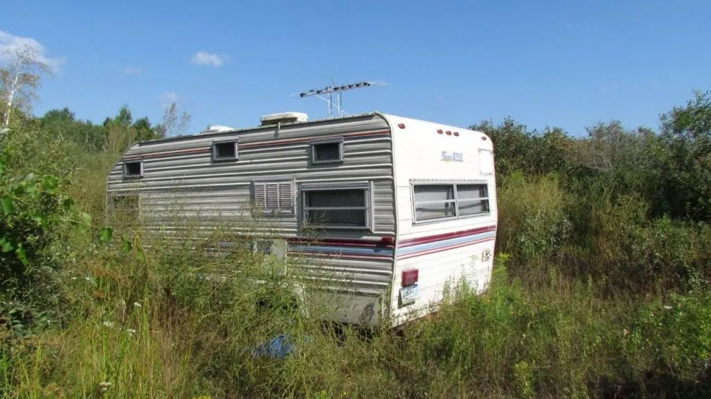 NICE wooded acreage with electric on-site. GOOD hunting area with lots of sign. Comes with a small camper. Black Creek crosses the land.