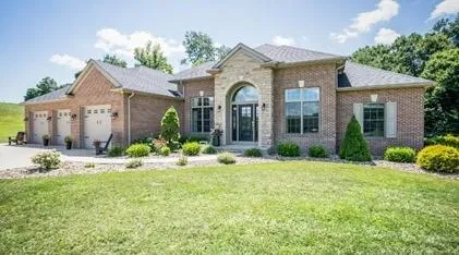 Pristine Ranch Home situated on 15 acres of beautiful country living! Home was built in 2015 to include over 2,400 sq ft plus full walk out basement! A huge 3 car garage, an asphalt/concrete driveway -professional landscaping surrounding homesite -open flowing floorplan! Front room living/dining room and/or office - a very warm and welcoming foyer w pillars to lead into great room w gas stone fireplace - hickory floors - custom bamboo blinds throughout - quartz counter tops - quartz breakfast bar - beautiful dark maple cabinets - High cathedral ceilings patio door leads to custom 3 season room w gas fireplace/gas grill/granite counter tops/paved brick floors! First floor laundry - 4 bed 2.5 bath home generator - security sys livestock fencing w spring water cau