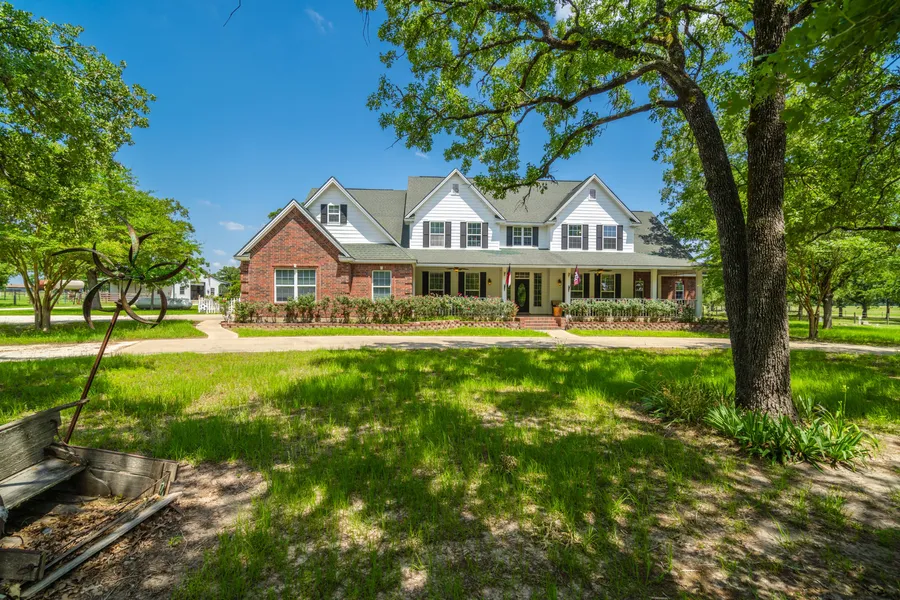There is a 2-story W.L. Martin Home Design custom-built home which was built in 2005. The home has 5 bedrooms, 4 full baths, and one-half bath. There is a large kitchen with a breakfast nook. Additionally, there is a living room, formal dining room, theater room, and office. The home has a two-car garage. The home is 4,451 SF of heat and cool space with a slab measurement of 4,920 SF according to the home plans. Fiber has been run to the home for high-speed internet, a unique feature in the country. Next to the home sits two barns approx. 1,200 SF each, one is used to store equipment and the other has been converted to a party barn with a bar and roll-up doors on both sides for a cross-breeze.
