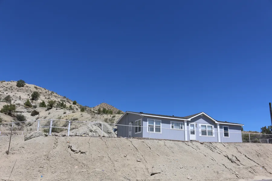 Double wide Manufactured Home with 3 bedrooms, 2 bathrooms, refrigerated air and situated on 1 ac +/-/ Piped fenced yard with built in fire pit with landscaped decorative rock.
