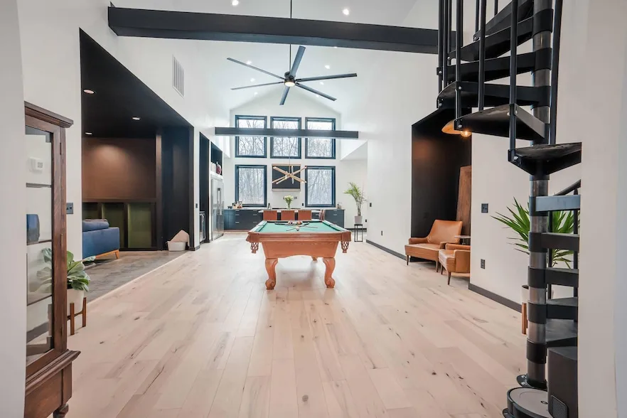 This exquisite 4-bedroom, 3-bath luxury home is nestled on 11 private acres, offering plenty of room with unparalleled elegance. The open concept living area boasts soaring ceilings with a beautiful loft that overlooks the great room. There is a gourmet kitchen, equipped with top-of-the-line appliances, high end cabinetry, and a spacious island all perfect for both cooking and entertaining. The counter tops are quartz, the refrigerator/freezer are oversized and the sink has two faucets and a glass rinser. The walk-in pantry is huge and features plenty of storage, a coffee station, upper shelves and lower cabinets. The 48 inch range features a double oven and a griddle and has a hood over it. Next to the kitchen is a 14x20 formal dining room for large gatherings and there is seating for 5 at the island for informal dining. The main floor also features two bedrooms, two bathrooms and the laundry. The primary bedroom on the main floor is spectacular. It features a sitting area complete with a fireplace, a very large walk-in closet, a double vanity and a soaking tub. The 4x12 walk-in shower features 6 body sprayers, 2 shower heads, 2 hand-held sprayers and a huge double rain fall shower head. Also located on the main floor is a comfortable living room with a very large gas fireplace, accent lighting and plenty of room for relaxing. The basement includes two additional bedrooms, a full bath and a cozy family/game room. The home has in-floor heat throughout (including the 3 stall garage), central A/C and a high-end water softener. The sprawling 11 plus acre lot blends luxury with nature and offers privacy and room for future development and outdoor enjoyment. Built in 2022, this one of a kind property is move-in ready or could make a great lakes area short term rental property.