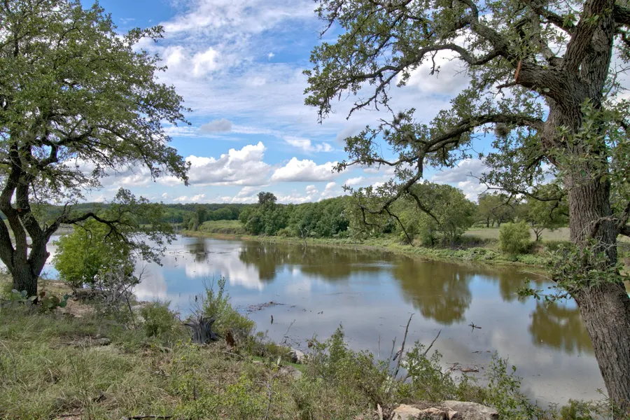 One of the premier riverfront home sites in the Texas hill country, 600 ft of waterfront located on the beautiful Guadalupe River. Imagine the lifestyle that can be enjoyed tucked away from the hustle bustle of city life, privacy, the pure joy of sitting at waters edge and just being, stargazing, wildlife watching & peaceful country views. A cleared building site surrounded by mature live oaks is awaiting your dream home. Located in the gated Rio Central area of Mystic Shores offering great amenities including