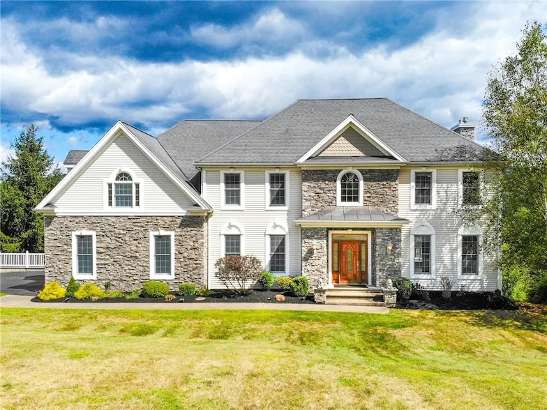Welcome to 3480 Conhocton Road, Back on market due to the buyer's inability to perform on the contract! Picturesquely situated on a lot with no neighbors in the back, in Painted Post s highly desirable Aurene subdivision; A stately residence with commanding views of the valley and river. Built in 2001 and thoughtfully refreshed with recent improvements, this home blends timeless craftsmanship with modern comfort. Inside, over 4,600 square feet of living space unfolds across three bright, gracious levels. The main floor, finished entirely in quality hardwoods, greets with a grand two-story entryway. A formal dining room features handsome inlaid floors, while the living room centers on a striking stone fireplace flanked by built-ins, the perfect gathering place. The heart of the home, an open kitchen with island and stainless appliances, offers both casual dining and effortless flow to the great room. A spacious laundry with sink and a convenient rear staircase add thoughtful touches. Upstairs are five generous bedrooms, including a serene owner s suite with dual closets and ample en-suite bath. A second bedroom boasts its own en-suite, while a third full bath serves the remaining bedrooms. A bonus bedroom with walk-in closet provides versatility for play, work, or guests. The walkout lower level invites relaxation and entertainment with abundant natural light, a wet bar, second stone fireplace, and flexible areas for media, billiards, or fitness. An additional finished room offers potential as a sixth bedroom, studio, or craft space. Recent updates include fresh interior paint, new flooring in three of the 4.5 baths, stainless appliances, and an epoxy-finished oversized garage with ample storage. Outdoors, the residence enjoys landscaped grounds and unobstructed views of the Chemung Valley, while its location is just minutes from downtown Corning and only 25 minutes to Watkins Glen, Finger Lakes wine country, and area state parks. A tidy and move-in-ready offering in Aurene, this home combines scale, setting, and sophistication a showcase for both quiet daily living and gracious entertaining.