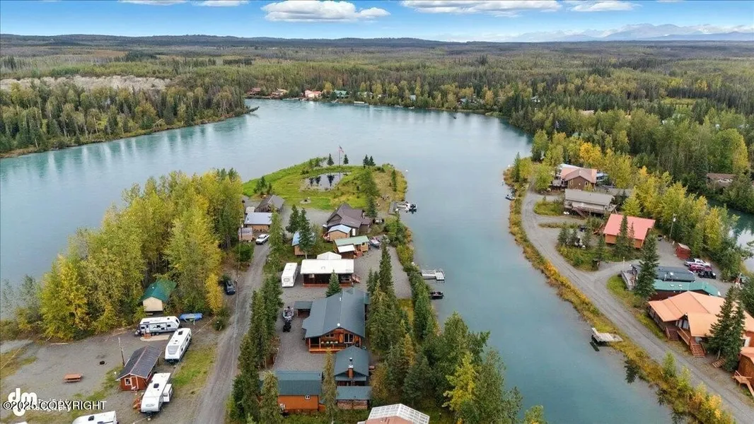 KENAI KEYS GATED RIVERFRONT COMMUNITY! Attractive, quality built home on the canal-connects to the WORLD FAMOUS KENAI RIVER! 1480 sf includes main home w/2 beds,1 bath, bunk house w/2 sleeping areas +3/4 bath. Enclosed gazebo/outdoor kitchen. Vaulted ceiling w/gas fireplace, wrap around deck, fish cleaning station, new metal dock, 2 storage bldgs & park-like setting w/floatplane access & mooring