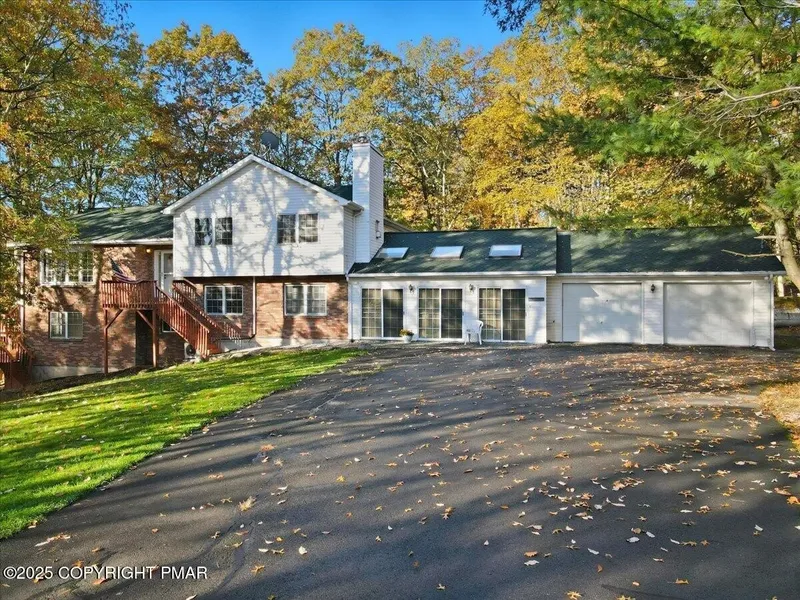 PRICE IMPROVEMENT On This Spacious 5-Bedroom, 3.5-Bath Split-Level Retreat With Pool, Hot Tub, And 2-Car Garage! Welcome To This Sprawling Split-Level Home Offering 5 Bedrooms And 3.5 Baths, In The Peaceful Ski Haven Lake Community With Low HOA Dues. Designed For Comfort And Entertaining, This Property Features Multiple Decks, A Private Pool, And A Relaxing Hot Tub In The Private Gym! Home is Surrounded By Nature. Inside, You'll Find Vaulted Ceilings, Skylights With Shades, And Three Fireplaces Adding Warmth And Character Throughout. The Main Living Area Showcases Parquet Floors, A Kitchen With Stainless Steel Appliances, A Gas Stove, And Direct Deck Access-Perfect For Outdoor Dining. The Living Room Includes A Beautiful Bow Window And One Of The Home's Fireplaces, While The Dining Area Also Opens To The Rear Decks For Easy Indoor-Outdoor Living. Upstairs, The Primary Suite Offers A Serene Retreat With Its Own Fireplace Sitting Area, A Large Walk-In Closet, And A Luxurious En Suite Bath Featuring A Jacuzzi Tub, Walk-In Shower, And Dual Sinks. The Second Floor Also Includes An Additional Bedroom And Lav. The Lower Level Boasts A Gym/Recreation Room With A See-Through Fireplace Shared With The Family Room, Plus Two More Spacious Bedrooms And Access To The Garage. On The Basement Level, You'll Find The Fifth Bedroom, Two Full Baths, Laundry Hookups, Another Large Recreation Area With A Pellet Stove, And A Bright, Heated Four-Season Sunroom-A Perfect Space To Relax Year-Round. With Multiple Decks For Entertaining And Plenty Of Room To Spread Out, This Home Combines Generous Space With A Cozy, Welcoming Feel. Located Just Minutes From Water Parks, Ski Resorts, Mt. Airy Casino, The Crossings Premium Outlets, Sanofi Pasteur, Golf Courses, Shopping, And Dining, This Home Truly Offers It All. Bring Your Personal Touches And Make This Fantastic Pocono Mountain Retreat Your Own! Gym Equipment Can Be Included With The Right Offer! Showings On Hold Until Sunday 11/2.