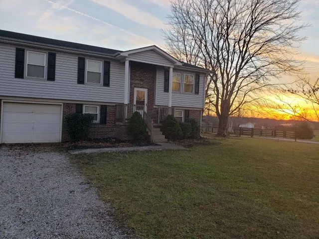 Enjoy your own piece of the country life with easy access to Richmond and Berea. This home sits on a level one-acre lot with farm views in the front and back! The backyard is completely fenced and and has a detached shed perfect for storage. In this home has 3 bedrooms, bathroom, living room, and eat-in kitchen as well as a lovely covered deck. A 4th bedroom is located downstairs as well as a bathroom, laundry room, den and bonus room. New tile in upstairs bath, updated flooring, fresh paint and updates throughout.
