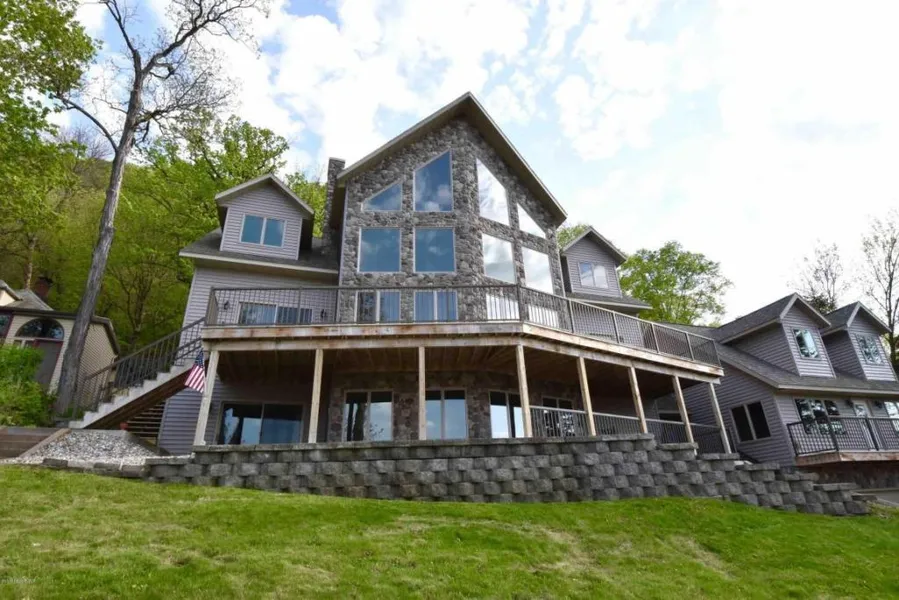 Million dollar view! Nestled on 1.7 acres, this custom designed, 2 owner home, overlooks the mighty Mississippi River. Contempory, two story walk-out, has an open floor plan with wonderful sun-filled living spaces. Floor to ceiling wood burning brick fireplace, amazing kitchen with cherry cabinets, granite counter-tops, and a center island that can sit 6. Other highlights include Brazilian golden walnut hardwood floors, Italian ceramic tile, and 7ft solid oak doors.