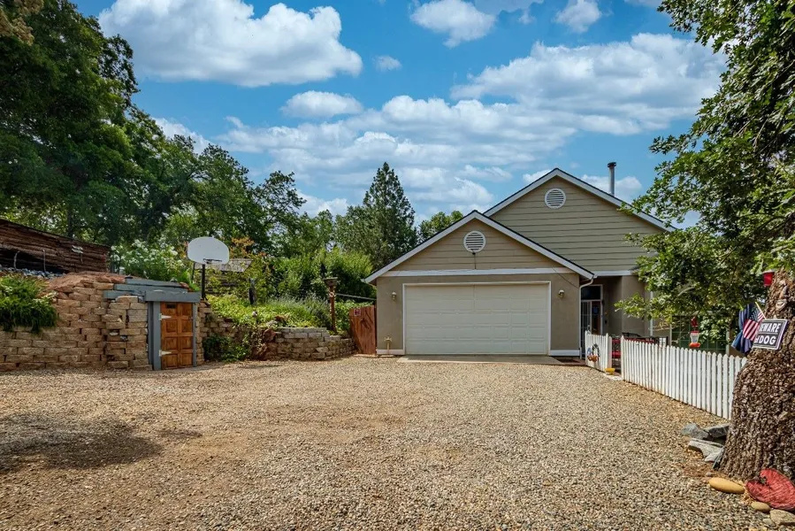 Available in the Sierra Highlands Subdivision is this beautiful custom, 3 bedroom, 2.5 bath, Tri-level home with a detached studio/shop situated on 2.71+/- acres with fabulous mountain and valley views! Incredibly unique architectural design with a step-down living room and step saver kitchen that features a corner window sink, oak cabinets, custom tile counters, new cooktop, microwave, double oven, and a breakfast nook. The master bedroom offers a private covered balcony where you can capture the gorgeous night light views. Also on this level is a loft/office area, craft/dark room, and walk-in attic space. The detached studio, currently being used as a shop, has a bathroom and its own private deck. The lavish garden will draw you outside with its variety of vegetables and fruit trees. Many outbuildings and chicken coop surround the property with a split rail fence along the road. Other features include Owned Solar, house generator, tankless water heater, central vac, RV covered parking, out buildings with electric, separate 3000 gallon water storage tank, new ridge cap on roof, 2 root cellars, and screened gutters.