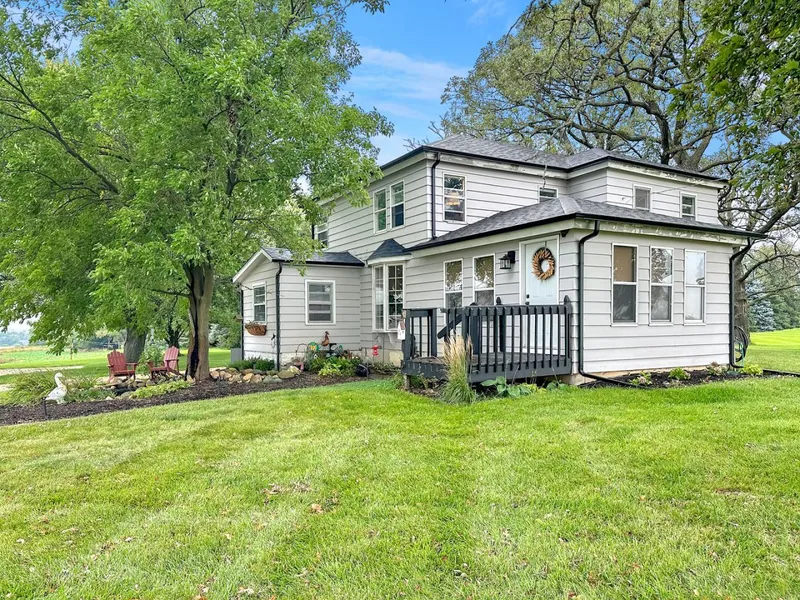 The tranquility of country living awaits you. Leave the hustle and bustle behind in this cute and comfortable 2 story farm house situated on almost 2.5 acres. Boasting an updated kitchen with custom soft close cabinetry, hardwood flooring, stainless steel appliances & breakfast nook. Huge formal dining is perfect for those special occasions & family gatherings. The vaulted living room adjoins the dining room for ease of entertaining! 1st floor bedroom with attached full bath is great for an in-law living arrangement or use as a home office. Conveniently located 1st floor laundry is also an added bonus. The upper level offers all newer carpet and an expansive master bedroom complete with his and her closets and a remodeled full private bath. Enjoy morning coffee on you private master balcony. There is a 2nd spacious bedroom and 3rd full bath on the 2nd floor as well. Plenty of storage can be found in the basement or back porch area. Lovely landscaping with little pond near the patio. There is a corn crib barn and enormous 6+ car garage/outbuilding that is approx. 30x70. So many new/newer items... furnace, AC, roof, gutters, well pump, water heater, electrical, plumbing & water filtration system. Welcome Home!