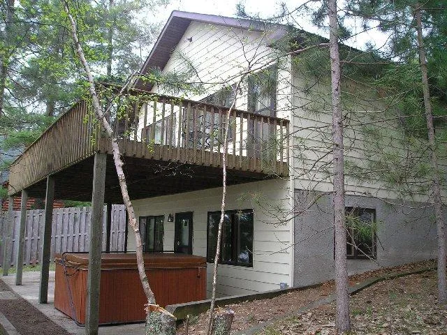 BIG MC KENZIE LAKE. Tall pines and a magnificent sunset view with this property on the popular walleye and muskie fishing lake. Full recreational for boating, skiing, and sailing. No steep hill, no road to cross. Small amount of yard to maintain. Level around the house and garage and then several easy steps to the 75 sandy swimming shoreline. Fire pit and conversation area at frontage. This 4-season newer home has northwood rustic interior, easy care maintenance free exterior. Lake view wrap around deck with access from the dining area. Painted walls, pine trim accents. Vaulted ceiling in the great room open to the dining and kitchen and living area. Two bedrooms and bath on the main level; plus family room, bedroom, bath, and utility on the finished lower level walk out. Lakeside deck, lower level concrete patio with hot tub. 28 X 32 2-car detached garage. Boat to two summer clubs on the lake. On the snowmobile trail; close to ATV trail. Nearby championship 18-hole golf course, shopping, and other fine restaurants and bar/grills.