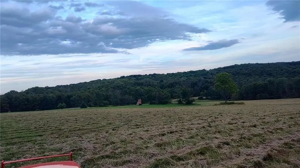 35 wonderful acres with a pond that overlooks PA. The land is beautiful and well-groomed. Build your dream house or this would be perfect as a farm. Previously used for horses and most recently as a Spartan training course. Has a well, pole building, partial septic, and electric. The pole barn-machinery shed is 30x40 (1999)- Convert it back to stables. The addition attached to the pole barn is 24x36 (2006) and has a washer/dryer hookup, full bath, insulation, metal roof & metal siding. Concrete slab. This could be finished again into living space. It was formerly an apartment. Permit is filed with the town. About 18 acres of wooded land and about 17 acres of fields.