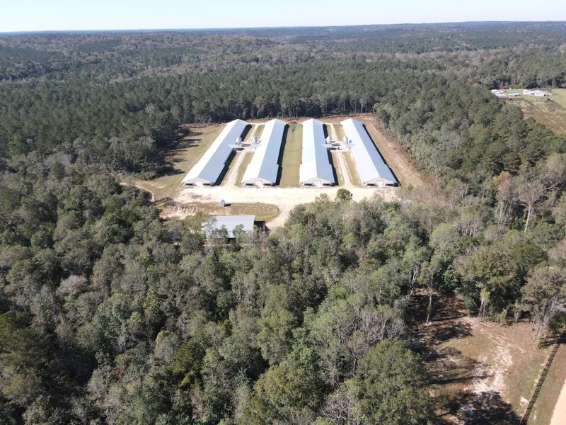 Ozark Mega Broiler Farm is a four-house broiler farm located in Dale County, AL just outside of the city limits of Ozark, AL. The farm consists of 35 acres that feature four 60x600 poultry houses, an 80x80 equipment barn, and all farm equipment necessary to run this operation. This state-of-the-art broiler farm has all the latest technology and equipment currently available to poultry farmers. This poultry farm was constructed in 2023 and has been immaculately maintained and all equipment is in like-new condition. With the single exception of an on-site residence, the Ozark Mega Broiler Farm is a turnkey opportunity and ready for a new buyer to continue current production.