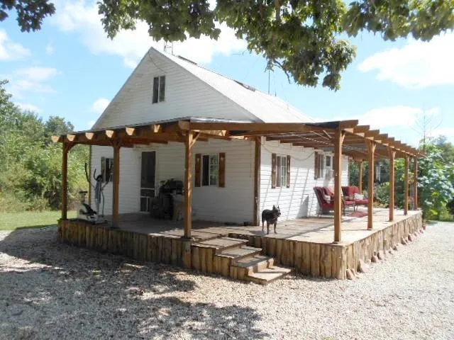 There is 35 acres of secluded acres with hundreds of wilderness near by. There are a few folks, but far away from it all. Good grasses of alfalfa, clover for your goats-horses or you can raise a few cows. Several outbuildings that all have fenced in pasture for your animals. Harvestable walnut, oak & hickory trees. Seasonal creek too. 10x12 wood heated greenhouse and garden plots of strawberry, blackberry, red & black raspberry. Established asparagus beds, elderberry stands, mature mulberry, apple, pear, cherry, apricot & persimmons. The house is powered by a hybrid off grid solar & is a valuable asset to any off grid homestead. The house has 2 bedrooms and a loft that can be used as a 3rd bedroom if needed.