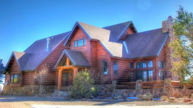 Sixteen inch hand-hewn logs on either side of the entry and a hand carved walnut front door welcome you. Once inside, attention to detail is everywhere, notably the special attention to the ceiling treatments. Above the great room and library is an intricate design of 12 inch log trusses. Beautiful wood ceilings can be found in almost every room, along with wide plank flooring, 6 inch base board trim and 3 inch trim around all windows and doors.