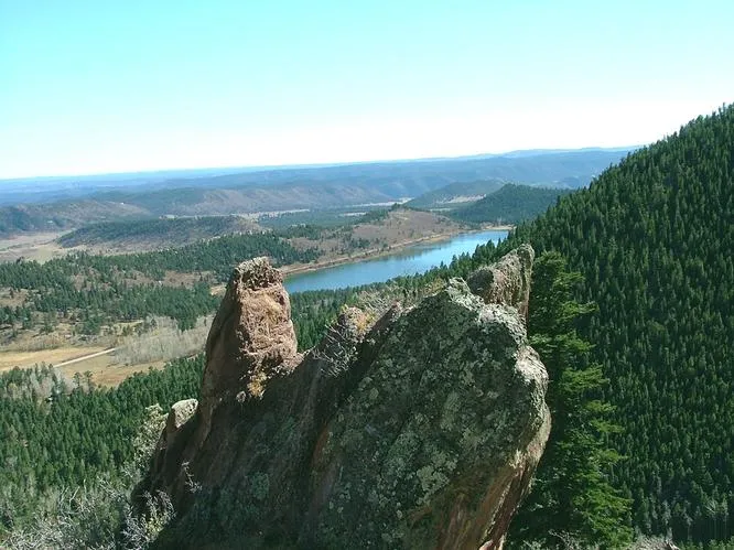 # Upper portion of the property features a gentle spacious ridgetop overlooking Monument Lake and tremendous rock outcroppings with views of the Sangre de Cristos.