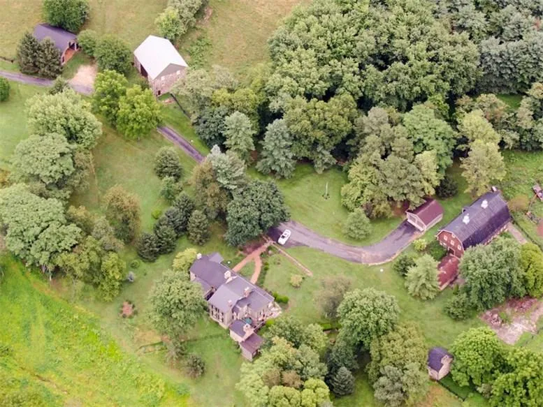 The main house is a two story Federal style structure constructed of native fieldstone in an uncoursed rubble pattern with stone quoins. The original structure was built between 1790 and 1800 with additions added over the next two centuries adding modern amenities but always keeping preservation at the forefront.