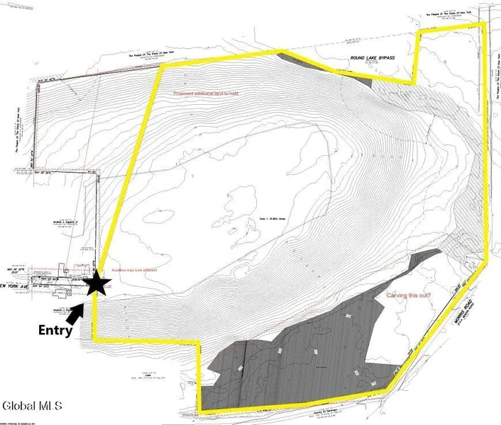 Discover endless possibilities with this rare 35-acre parcel perfectly situated in the Village of Round Lake, just minutes from I-87 and the Luther Forest Tech Park. This unique property borders the Zim Smith Trail, offering direct access to one of Saratoga County's most popular recreational paths. The land features approximately 10 acres of open pasture surrounded by mature trees, providing a peaceful, private setting ideal for a gentleman's farm, estate site, or residential subdivision. Public water, sewer, and natural gas are available at the road, adding convenience to your development or build plans. Zoned RV-1 Residential, this property presents an exceptional opportunity for builders, investors, or anyone seeking a scenic retreat in a highly desirable location. A rare blend of privacy, accessibility, and potential-right in the heart of Round Lake. Contingent upon subdivision.