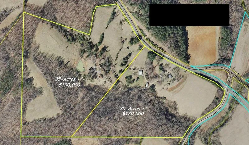 Located in the "heart" of the Yadkin Valley Wine Country, this is a portion of a 93-acre +/- parcel. This portion is 35-acres +/- with a house (no value associated), barn, pond with pier, pasture land, and timber land. Mountain views with stream. If this parcel is purchased separately, a new entrance will be required.