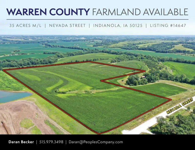 Offering 35 acres of prime Warren County farmland located just east of R63 on the newly paved Nevada Street. This farm has approximately 33.78 acres currently being farmed with a CSR 2 of 85. The location and views make this property the perfect place to build your dream home. If you like to develop large acreages, there are multiple building site possibilities. An additional 42 acres m/l is available to the East.