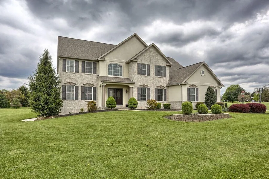 MOTIVATED SELLER! This stunning and not-so-average 2 story is a must see! 4BR or use the study for 5th w/ full bath on 1st floor. Open, grand foyer with Brazilian cherry floors throughout LR, DR and open kit w/granite counters, breakfast bar & dining area w/ceramic tiled flrs, vaulted ceiling in FR, FP and rear stairs to second flr master ste, walk in shower & soaking tub w/dressing area, built-ins and tray ceiling, 3BRs & full bath, laundry room on main level was expanded to include a huge walk in pantry, storage & mudroom area w/closets all situate on 1.2 acres of land prof. landscaped yard with electronic pet fence, o/s 2 car garage, high ceilings in the entire house and basement while unfinished is ready and pre-plumbed More...
