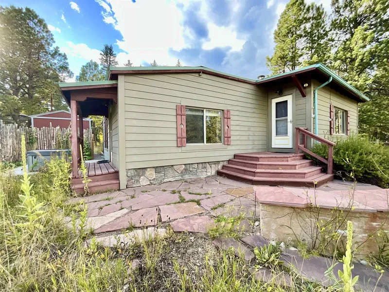 Charming mountain retreat located in the desirable Valle Escondido Golf Course community. This 2-bedroom, 1.5-bath home includes a bonus room (potential extra bedroom or office space?) and TWO large storage buildings. Features include Hickory wood and ceramic flooring, granite countertops, stainless steel appliances, a hot tub, and a modern security system. Back porch is wired for a Kiln and/or Potters wheel. Enjoy breathtaking views of the surrounding mountains and wildlife as they pass by right in front of your stone patio area. The property's proximity to Carson National Forest is an added plus, with year-round outdoor recreation including hiking, camping, hunting, mountain biking, and ATV/UTV trails. As part of the Valle Escondido Golf Course Association, you'll also enjoy access to amenities such as a swimming pool, fishing ponds, playground, basketball/volleyball courts, golfing, and community social events at the Club house-perfect for embracing mountain living at its best.