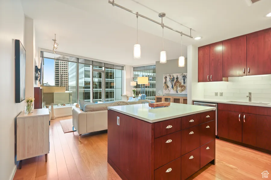 Welcome to refined urban living in the heart of Salt Lake City. This beautifully updated condo in The Regent offers an unbeatable combination of luxury, comfort, and convenience. The condo's interior has been thoughtfully upgraded with a stylish new backsplash, high-end countertops, and a designer farmhouse sink, blending modern sophistication with functional elegance. Motorized shades have been installed throughout, with blackout shades in the primary bedroom for ultimate privacy and rest. Enjoy cozy evenings by the modern fireplace, or take in city views from your private balcony, a rare luxury in downtown living. The Regent is a premier, high-rise community known for its sleek architecture, upscale amenities, and unbeatable location. Residents enjoy access to a private gym, pool, spa, and security features throughout. Positioned next to the Salt Lake City Central Precinct, safety and peace of mind come standard. Live within walking distance to Salt Lake's cultural core: The Regent is located at City Creek Center, next to the Eccles Theater, Salt Palace Convention Center, art galleries, Temple Square, and much more. Commuting is a breeze with walking access to Class-A office space, close proximity to the University of Utah, and quick access to I-15 and a train that goes directly to Salt Lake International Airport. Whether you are seeking a stylish homebase or a smart investment, this condo delivers the best of city living with the comfort and security of a high-end residence. Schedule your private tour today and experience The Regent lifestyle for yourself. ** Buyer to verify all information provided **