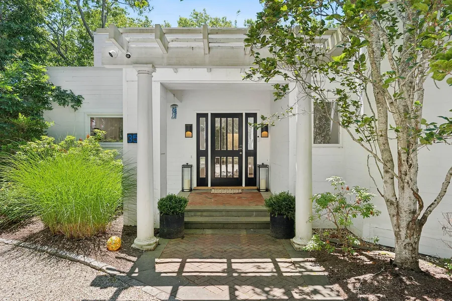 You have just found perfection in this newly renovated contemporary coastal escape, ready for immediate luxury living close to everything you love about the Hamptons. Privately located on 1.41+/- acres, this chic 2,900 +/- sq. ft. turnkey home with a new roof and all new windows & doors offers five bedrooms and four full and one half sleek, modern, newly renovated baths. Interiors are immediately impressive with beautifully refinished hardwood floors and abundant natural light. On the main level is the great room featuring a central dual-sided gas fireplace, arched ceilings with skylights, and 3 large sliding glass doors leading to the sunny heated saltwater pool, complete with new liner, new heater & impressively surrounded by Brazilian hardwood decking with under rail lighting-making this the home's centerpiece. Natural light from the central skylight beams through the kitchen, which has extended eat-in countertops and stainless-steel appliances. Adjacent, there is a dedicated, comfortable, and spacious dining area. Perfect for entertainers and wine enthusiasts, is a glass-enclosed, temperature-regulated walk-in wine room. Tucked away, you'll find the recreation room/den featuring a built-in wet bar with seating, a beverage refrigerator, and a large pass-through window that connects the indoor bar with the pool area. Completing the vision of resort living is a newly installed and well-sized cedar sauna and a full bath. Also on the first floor are two bright, sun-filled bedrooms-one overlooking the pool, along with another full bath and a half bath. For your convenience, the laundry is also on this main level. The second level of this fresh modern home features a spacious ensuite primary bedroom with a custom-built walk-in closet, along with two more bedrooms that share a full bath. Other upgrades to this one-of-a-kind Hamptons home include new mechanicals, new ductless AC units in the three upstairs bedrooms, a new indoor staircase, and railings. Privately sited and surrounded by natural landscaping, the home is located within minutes to multiple water access, bay beaches, waterfront restaurants, and all that East Hampton Village has to offer.