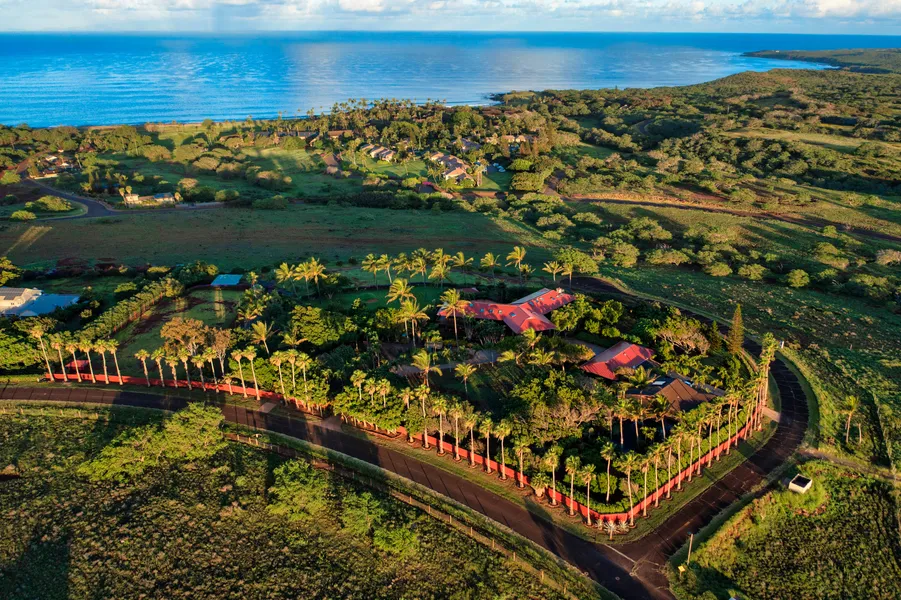 A Molokai masterpiece is for those wanting a tropical peaceful tranquil remote lifestyle. The Friendly Isle welcomes you to this gated 5.73 acre fully fenced estate. Panoramic ocean views, a short drive to the ocean, elegant, luxurious, contemporary, fully furnished getaway awaits you. It features 4 bedrooms (1 primary suite, 1 junior suite, 2 additional guest bedrooms) 3.5 bathrooms, walk-in closets, private office, media room, formal dining area, two fireplaces, card room with adjoining bar area & custom island and Sapele cabinets and a large laundry room. Enjoy the island lifestyle with pool, pool cabana, jacuzzi, steam room with shower, fitness area, koi pond & waterfall, owned PV solar panels, solar shades, electric skylights, 5 split A/C units, updated kitchen featuring Subzero fridge & separate freezer, Thermador appliances and propane gas cooktop, oversized 2 car garage, carport including workshop and additional recreation room, equestrian riding arena, putting green, 200 exotic palm trees, 20' queen segos, fruit trees throughout the grounds and additional 2 bedroom 1 bathroom cottage with private entry gate! All move-in ready, just waiting for you to arrive and enjoy the Hawaii lifestyle.