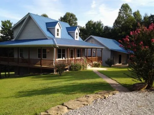 This 2 bedroom 2 bath home sits on 35.48 acres by survey in Cumberland County, Kentucky. It is located only a short driving distance to Dale Hollow Lake and Lake Cumberland Kentucky. The down stairs consists of the living room with hickory floors throughout, a dining room, kitchen with hickory cabinets, laundry room, guest bedroom with a beautiful view of the back of the farm along with a guest bathroom. The upstairs consists of the master bedroom, master bath, and sitting room. The basement has 10ft ceilings and offers lots of storage space, it is plumbed for a shower, has a huge walk-in in pantry and French doors that lead to the back yard. A 30X40 ft 3 car garage with an upstairs for storage is another plus. This garage has concrete floors and a 220 amp service. This property also offers a 40X60 ft metal building with a living quarters, a bedroom, full bath and kitchen. The building is insulated, has a concrete floor and is wired with 220 amp electric service. It has 1 12X20 ft door and 2 10X10 ft doors. This building also offers fantastic lighting. The 35.48 acres is mostly pasture land with 25% of the property being wooded. A great cattle or horse farm. Many natural Springs and caves are on the property as well as an abundance of wildlife such as deer, turkey, squirrel and other critters. If you are looking for a property that is private and has a country setting, 16052-00982