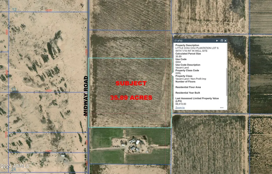 THIS IS A VERY CLEAN, FLAT, PREVIOUSLY FARMED PARCEL OF 36 ACRES FRONTING PAVED MIDWAY ROAD, LOCATED 1 MILE SOUTH OF INTERSTATE 8. PROPERTY HAS IRRIGATION WATER RIGHTS, AND A 1/16TH INTEREST IN A MASSIVE IRRIGATION WELL. ELECTRICITY IS CLOSE. ATTESA MOTORSPORTS COMPLEX UNDERWAY JUST 2 MILES TO THE EAST. LUCID MOTORS AND TRACTOR SUPPLY LOCATED JUST 10 MILES FROM PROPERTY. SELLER MAY CARRY WITH THE RIGHT OFFER. PHOTOS COMING SOON!
