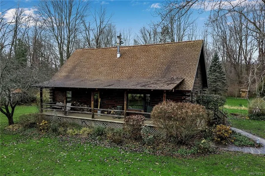 Welcome to the LOG CABIN! This 1888 sq ft home, w/1 owner built in 1989 sits on 10 acres of land in Newfane! 3 bed,2 bath, 2 car garage comes w/an electric pet fence, Generac system, hardwired OMNI shield smoke & co2 detectors, & a huge stack of wood for the WBF. Natural woodwork inside & outside w/plenty of oversized windows to bring in natural lighting. Cozy living room w/a WBF, luxury vinyl HWF,& lofted ceilings w/natural wood beams giving this living room an authentic log cabin feeling. The loft area overlooks the 1st floor living space w/newer rugs-sit,relax,read a book or just hang out.The upper bed offers ample sleeping quarters w/double closets & its own updated bath right next door.Head back down to the kitchen where you will find granite countertops,luxury HWF,a breakfast bar,a built-in kitchen eating area-updated in 2021- making this kitchen feel luxurious. You’ll find 2 more beds & an updated bath right next to the kitchen. 1st floor laundry. Explore the 10 acres w/a bridge, koi pond,& beautiful landscaping. The 2 car garage is equipped for the mechanic’s dreams-all equipment is negotiable.