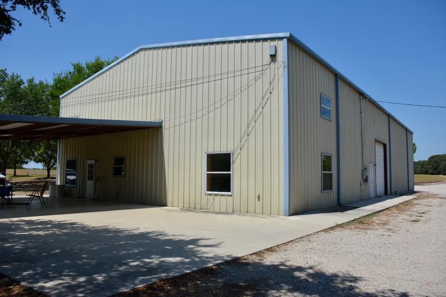 There is an impressive barndo that per Comanche CAD boasts approx 4,000 sq ft of living area, approx 3,000 sq ft of shop and also has a 30' x 30' covered patio on the back. This patio comes directly off the kitchen so makes entertaining even easier. Living area is two stories. The first floor 1 bedroom, 2 baths, utility room, office space and large, open concept kitchen, dining and living area. Kitchen has an abundance of cabinet and counter top space. There is also a walk in pantry. Upstairs there are 4 bedrooms, 2 baths and large storage room. All of the bedrooms have large, walk in closets. All bedrooms have carpet and there is linoleum is in kitchen area and bath rooms. There are 2 central heat and air units - one for each story.