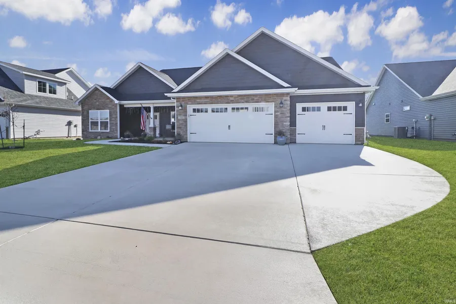 Welcome to this stunning newer-construction single-story home featuring 4 spacious bedrooms, 3 full baths, and a versatile den perfect for a home office, playroom, or media space. Designed with modern living in mind, the open-concept floorplan seamlessly connects the gourmet kitchen, dining area, and bright living room, all enhanced by an elegant tray ceiling and an abundance of natural light. Relax and unwind in the screened porch, overlooking a fully fenced backyard ideal for pets, play, and outdoor entertaining. The home also offers a 3-car garage, providing ample storage and parking. Thoughtfully designed from top to bottom, this home blends style, comfort, and functionality. Move-in ready and better than new. Close distance to schools, shopping, dining, parks and Purdue University.