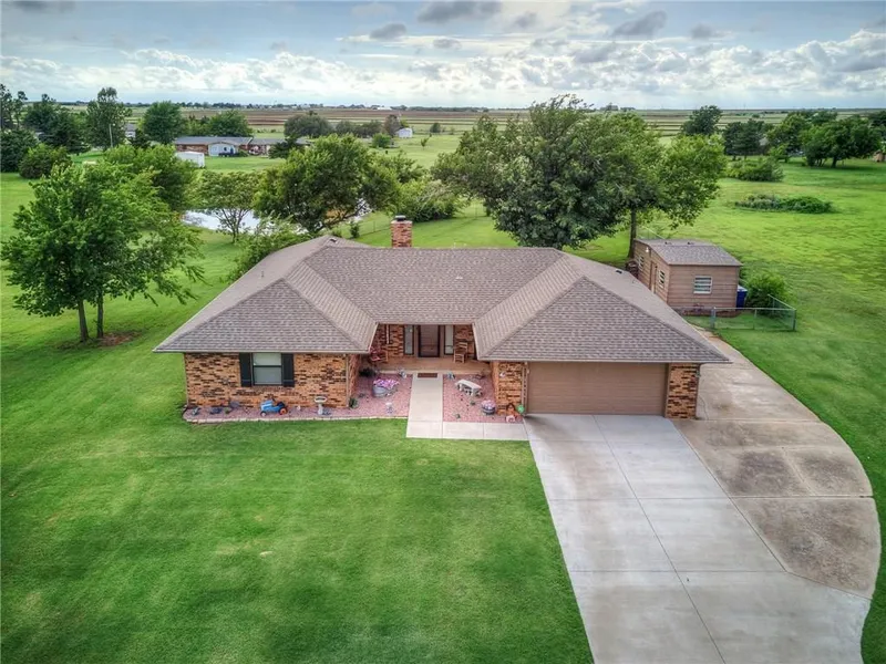 AMAZING!!! FABULOUS!!! ADORABLE!!! Thats what I have to say about this home. This wonderful home is located on a little over two acre corner lot, partially fenced for the puppies to roam. A beautiful pond. Outdoor building to store your mowers and other items. Large front porch to sit and enjoy the beauty of the outdoors. Back porch has a brand new deck built so you can sit and gaze at the amazing Oklahoma sunsets. AND in 2016 this home was completely remodeled. All flooring, roof, hot water tank, air conditioner, cabinets in all rooms, appliances, hardware, fixtures, toilets, showers, concrete driveway, etc. were replaced. Don't forget to notice the small office behind the front door as you walk in. You will be so amazed at the perfection of this home. So many wonderful things and not enough room to list it all.