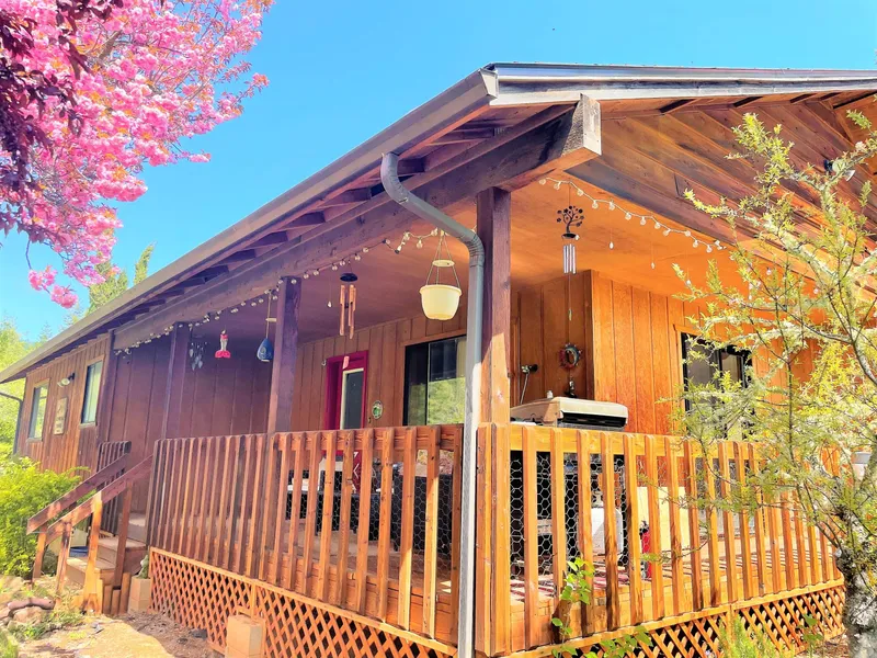 Owned on grid solar system attached to beautiful cedar home on 9.89 acres!! The solar system is owned and attached to the on-grid power but ready to be set up for off grid. With the newer solar, roof and flooring this 3 bed 2 bath is move in ready. Only minutes east of Cave Junction and near the end of Mona Way where the road turns into 39-7-18 you have easy access to be in town to public lands. East side of property has been thinned of dead timber and is bordered by public lands. This single story home features open floor plan, skylights, wood stove and mud room with sink and laundry. There is also a wrap around covered deck from the main entrance to the sliding door in living room on the side. The full property is partially fenced but is fenced for dogs with gated entrance around the house. All information is deemed accurate and subject to change, Buyer to do their own dilligence.