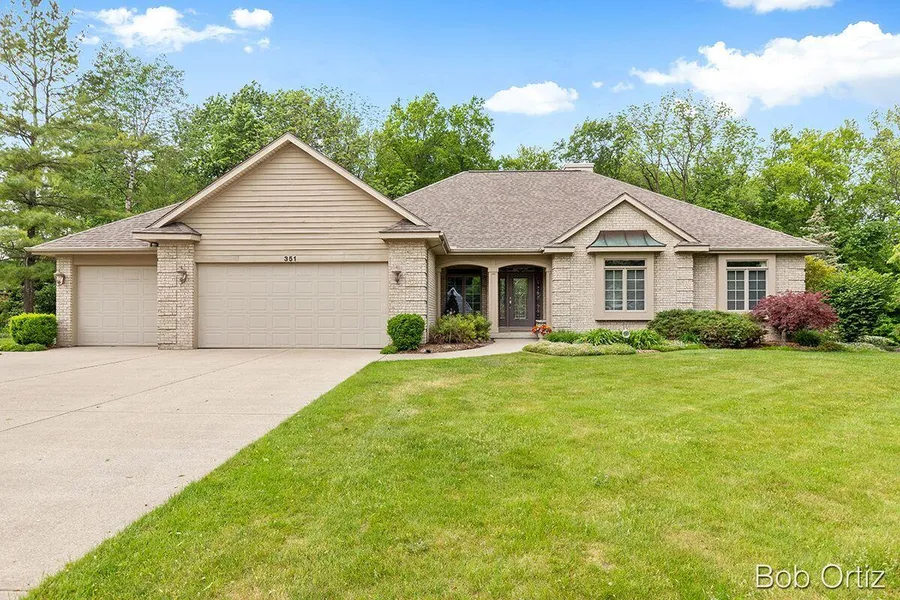 One owner custom built walkout home by George Sweetman Builder with a full brick front. This beautiful home is situated on 1.43 private wooded acres in the Summerset neighborhood. The backyard features a lovely Koi pond with a waterfall. Home has an ideal floor plan with three bedrooms on the main floor plus a kitchen, formal dining room, eating area, great room with gas fireplace, laundry room, a sun room, security system and 2.5 baths. The walkout level features a family room with gas fireplace, private bath, surround sound system and two bedrooms on opposite sides of the lower level. The large rear deck has been expanded for entertaining. The home has a three stall garage and a beautifully landscaped yard, in ground sprinklers and is located in the award winning Grandville schools.All offers are due by Monday, June 7, 2021 at noon