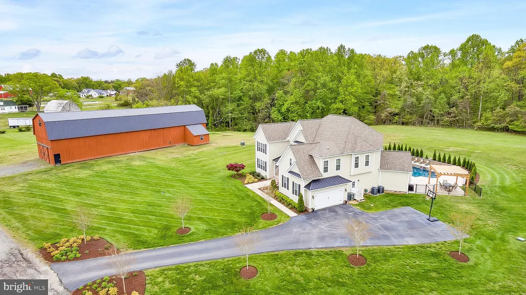 FLAWLESS!! This remarkable custom home will draw you in from the moment you pull in the driveway! This 4900sqft 4 bed 3.5 bath colonial is a show stopper featuring a 2 car attached garage, a custom in-ground gunite diving pool, a massive travertine patio, and a 4000 sqft barn on a very flat 6.1 Acre Lot! Notable construction features include a lifetime architectural roof, hardie plank cement board siding, double hung windows, 2x6 construction w/ a spray foam flash & batt insulation, and over 100 recessed lights just to name a few. Walking in, you are greeted by gorgeous 5" plank maple hardwood floors that flow throughout the entire home. Custom trim/molding accents every angle . The main floor is wide open with very ceiling heights ranging from 9' in the office and dining room, 13' in the master bedroom, 14' in the family room, and 20' in the foyer, great room and kitchen! The large main level master is right off the formal living room and has tray ceilings, its own separate seating area w/ access to the pool/patio, a large walk in closet and a large en-suite bath! The finishes in the bathroom will make you feel like you have your own personal oasis with gorgeous tile shower, a sunken jacuzzi tub w/ a granite surround, and a custom vanity! After passing through the great room and heading into the kitchen you'll be impressed with the upgraded countertops, stainless steel appliances, tile backsplash and plentiful counter/cabinet space! Whether you are eating at the breakfast bar or in the breakfast area, you will have a great view to the pool! The large windows give the room an immense amount of light and open feel especially in the cozy family room! Upstairs you will find a second master bedroom and bathroom along with 2 additional bedrooms joined by a jack and jill bathroom. Sit back and relax in the large upstairs recreational room that gives the feel of a finished basement but with a lot more natural light! This house is an entertainers dream from the inside & out! The backyard is perfect for family gatherings and BBQ's with the large travertine patio area surrounding the massive pool all situated on a spectacular lot! The crawlspace is even conditioned which allows for an additional 2000 sqft of storage if you wish to utilize it! The 4000 sqft barn is outfitted with electric, a finished upper level office space, and a workshop area in the rear. This barn could serve a multitude of uses! If you are looking for an extremely well constructed custom home on an amazing lot w/ a phenomenal pool and barn, look no further...