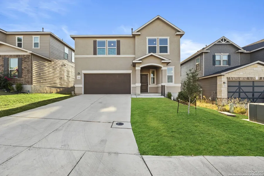 Spacious and versatile this 5-bedroom home is over 2,400 sqft with dual primary suites! Recently refreshed and featuring updated flooring, this beautifully maintained home offers an open-concept layout ideal for modern living. Enjoy a primary suite on each level perfect for multi-generational living or guest flexibility. The kitchen includes dazzling quartz countertops, stainless steel appliances (refrigerator, dishwasher, and range included) and flows seamlessly into the bright living and dining areas. Laminate flooring runs through the main spaces with cozy carpet in the bedrooms, and each room features walk-in closets for ample storage. A main-floor laundry room with washer and dryer included, plus a large fenced backyard with sprinkler system and established landscaping, complete this move-in-ready home that blends comfort, space, and convenience.
