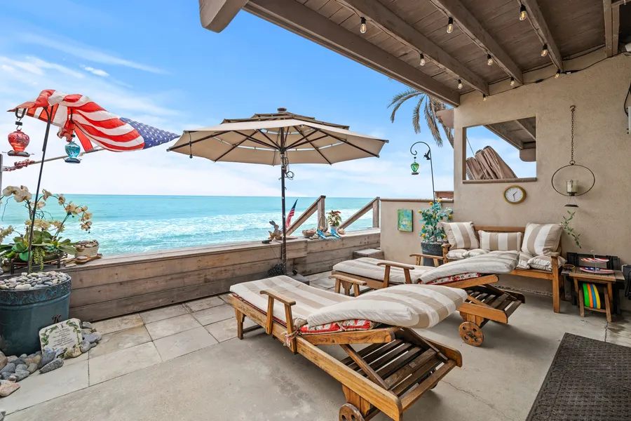 Opportunities to own one home on Capistrano Beachs famed Beach Road are extremely rare. Now, a virtually unheard of chance has presented itself in the exclusive guard-gated enclavea single-level residence, currently configured as a duplex, that offers stunning front-row ocean views and an impressive list of valuable upgrades. Both residences are on the sand, with steps to the beach from covered rear patios that invite Catalina Island, whitewater, sunset and coastline vistas as far up the coast as Dana Points dramatic Headlands. Encompassing a grand total of approximately 2,106 square feet, both three-bedroom, two-bath designs feature open floorplans with vaulted ceilings, ocean-view living rooms, kitchens with granite countertops and high-end appliances, upgraded dual-pane windows, interior laundry areas, tile flooring throughout, and custom tile and newer fixtures in baths. Third bedrooms open to private front patios and are extra-large, making them ideal as bonus rooms, home offices and more. The homesite is more than 100' deep and spans about 6,098 square feet, including private side entryways and a three-vehicle carport. Lots along Beach Road extend to the median high-tide line on the sand, which is exceptionally rare in California. At Beach Road, residents appreciate a one-of-a-kind setting that is convenient to an abundance of coastal recreation, shops and restaurants, Dana Point Harbor, San Clemente's historic pier and Laguna Beach. Current owner has development plans that have been submitted to the city and Coastal Commission for a 4,100 contemporary new construction build. Great opportunity to build a dream home.