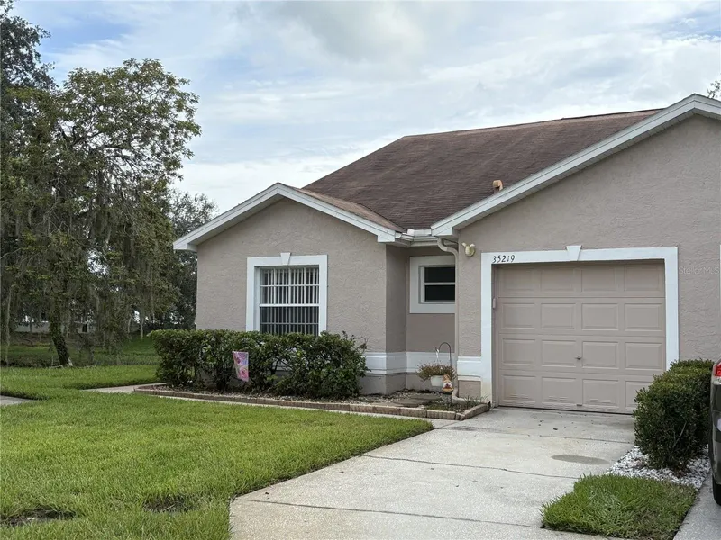 Maintenance-Free Villa in the MANORS of Lake Bernadette is READY for it's new owners! This Charming, Move-In Ready 3-bedroom, 2-bath villa is perfectly situated on a shaded cul-de-sac in the highly desired golf community of Lake Bernadette. Enjoy Serene pond views as you enter through the screened front entry and enjoy peaceful water views from the foyer, dining area, and kitchen. The spacious eat-in kitchen offers ample cabinetry, generous counter space and a convenient pass-through to the formal dining room, which opens to the bright and airy great room. Vaulted ceilings, custom built-in shelving, and natural light give the space an open, welcoming feel. From here, sliding doors lead to the screened rear porch overlooking greenspace and a tranquil pond... perfect for morning coffee or evening relaxation. The split-bedroom layout provides privacy for the large primary suite with serene views and bath ensuite, complete with a walk-in closet and private linen closet. Two additional bedrooms and a full bath are located at the front of the home, along with an extra linen closet. The hallway laundry closet and one-car garage with added storage make everyday living easy. This home has been lovingly maintained and is in excellent condition. Buyers may wish to personalize with minor cosmetic updates, but it is move-in ready for immediate enjoyment. With low HOA fees that cover lawn care, roof replacement, exterior painting plus trash pickup, you’ll enjoy true maintenance-free living in the Manors of Lake Bernadette. The community offers resort-style amenities including two heated pools, clubhouse, fitness center, playground, tennis and basketball courts plus optional golf. All just minutes from I-75 for an easy commute to Tampa, Ocala, Orlando, local beaches, airports, and the shopping and dining of Wesley Chapel and Zephyrhills. Don’t miss this opportunity to enjoy the sunny Florida lifestyle—CALL TODAY!