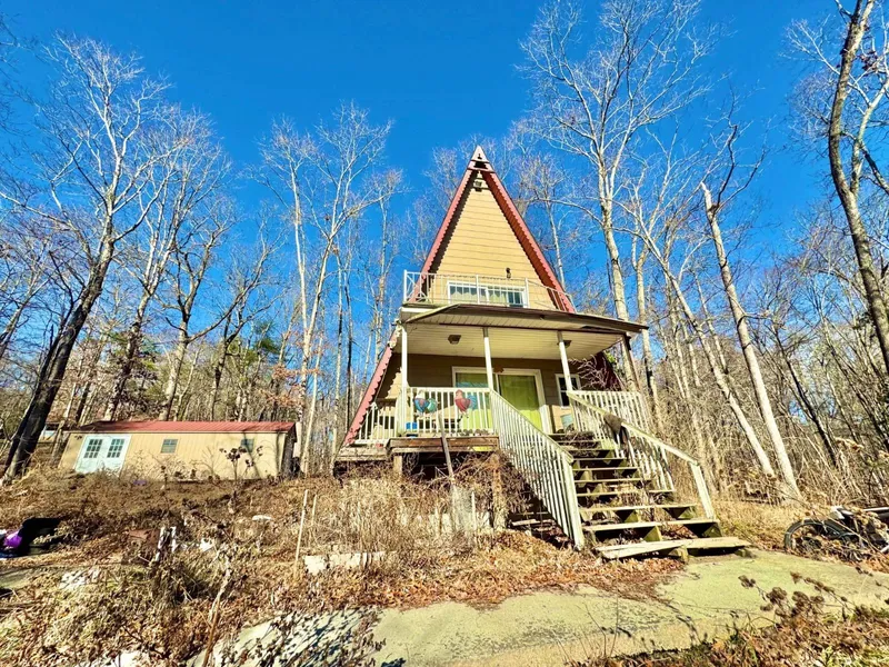 3 levels of living with this 3 Bedroom, 2 full bath A-frame home on 1.83 fenced acres in Draper. The home has lots of room with the main level of the home having the kitchen with hickory cabinetry, large living/dining space, primary bedroom option 1 with its own full ensuite bathroom. The second level has another living space with recessed display shelving, a large hallway with closet space leading into primary bedroom option 2 with its own ensuite full bathroom and 2 more closets. The third level is a small loft, great for a reading nook, and bedroom option 3, with 2 closets a fold down bed and fold down desk giving a creative way to utilize the space and give ample room for storage. Out back you have a concrete patio overlooking the woods in the back of the property, and out front there is a covered porch overlooking the front that is mostly clear with a few trees and bamboo. Keep in mind, this home needs some TLC and the best/safest entrance is in the back patio. All showings should be agent accompanied and seller or listing brokerage is not responsible for any injury occuring on or within the property.
