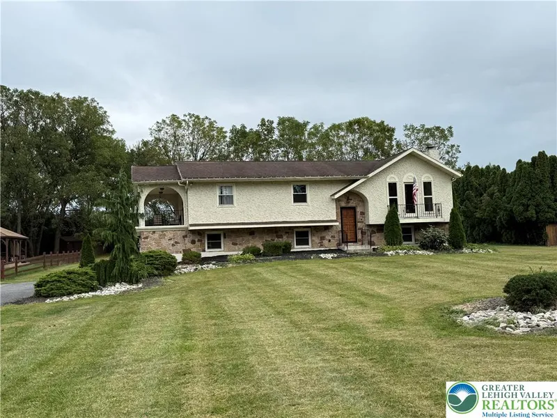 Come see this beautifully maintained home located on .82 Acres of open land. The home features Spanish stucco exterior completed with 2 balconies. The interior includes 4 bedrooms, 2.5 baths and a wood fireplace. There is no carpet. Floors are a mix of marble and wood floors. All stainless steel appliances stay with the home. The lower level has french doors to open up to the patio. This is perfect for family gatherings and entertaining. Located just minutes from RT 33, 78, 22 and the park and ride this home is perfect for commuters.