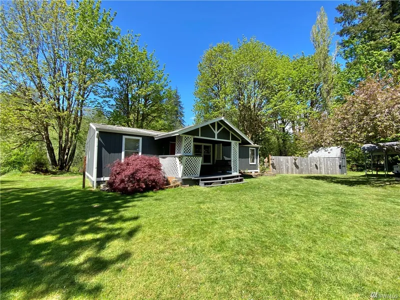 This park-like 2.5+ acre Tahuyha River lot is an outdoorsman's dream! New roof, new flooring, SS appliances, fireplace, covered decks & fresh interior/exterior paint. A-frame cabin across creek & up hill has 1 bd/1 bth, fireplace & needs some TLC. Shop & sheds w/ power, space for entertaining/parking RVs, boats, etc. Raised garden beds & fruit trees galore! Near quad/horseback/hiking trails & fishing. 10 min to Belfair. Sold as-is. Cabin's road access has been overgrown & is accessible by foot.